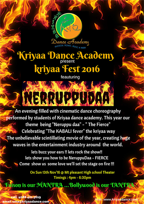 Join us for Kriyaa Fest 2016 on Sunday 13th Nov 2016 Time: 4pm -6:30pm Mt. Pleasant High School Theater, White road, San Jose