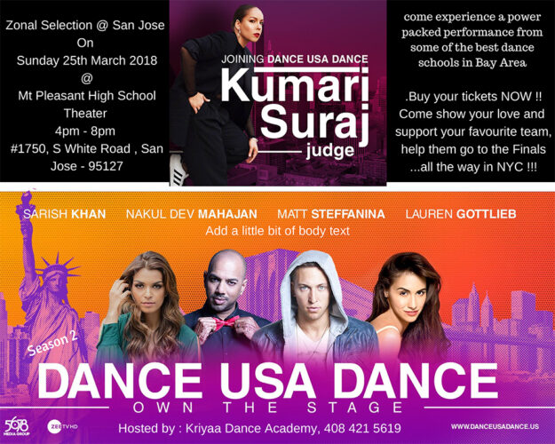 Join us for Dance USA Dance on Sunday 25th, March 2018 Time: 4pm -8pm Mt. Pleasant High School Theater, White Road, San Jose